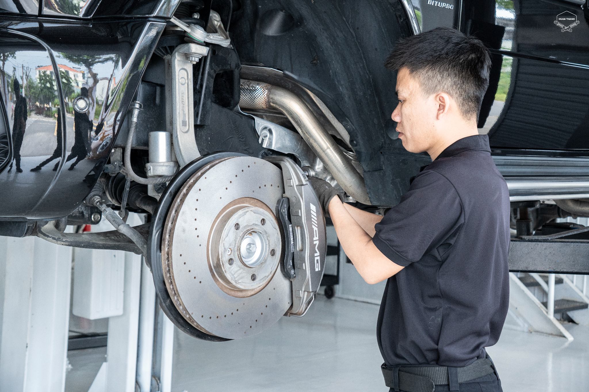 Thay thế má phanh trước cho Mercedes AMG G63 tại HUAN THANH WORKSHOP